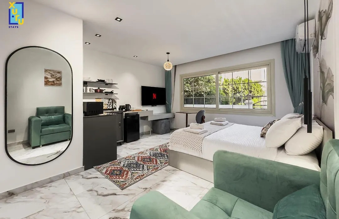 عزز إقامتك بمنطقة المطبخ الصغير المجهز المجهز بالغلاية الكهربائية والبرَّاد وأدوات المطبخ لراحتك في هذه الشقة. أقرب محطة مترو هي سعد زغلول، حيث تقع في غضون 10 دقيقة تقريبًا مشياً على الأقدام.